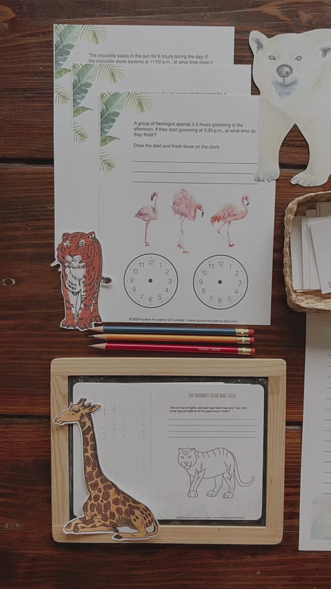 Week 2: Zoo Animals Time- Practice your time-telling and basic arithmetic skills while calculating time intervals. Use your creativity to come up with your own questions.